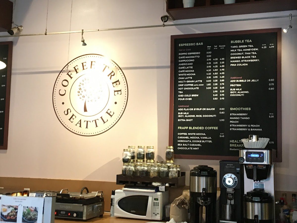 Welcome to Coffee Tree, a delightful gem located at 905 8th Ave in Seattle, WA. This cozy café specializes in providing a rich array of coffee options that are sure to tantalize any coffee lover's palate. From the robust Espresso ($3.95) to the velvety Cafe Mocha ($5.25), each beverage is crafted with precision for optimal flavor. For those seeking something unique, try the refreshing Cold Brew ($4.55) or the soothing London Fog ($4.95).